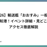 本稿では、イベントの概要から輸送艦「おおすみ」の驚くべき能力、当日の見どころ、そして高知港へのアクセス方法まで、詳しく解説します。